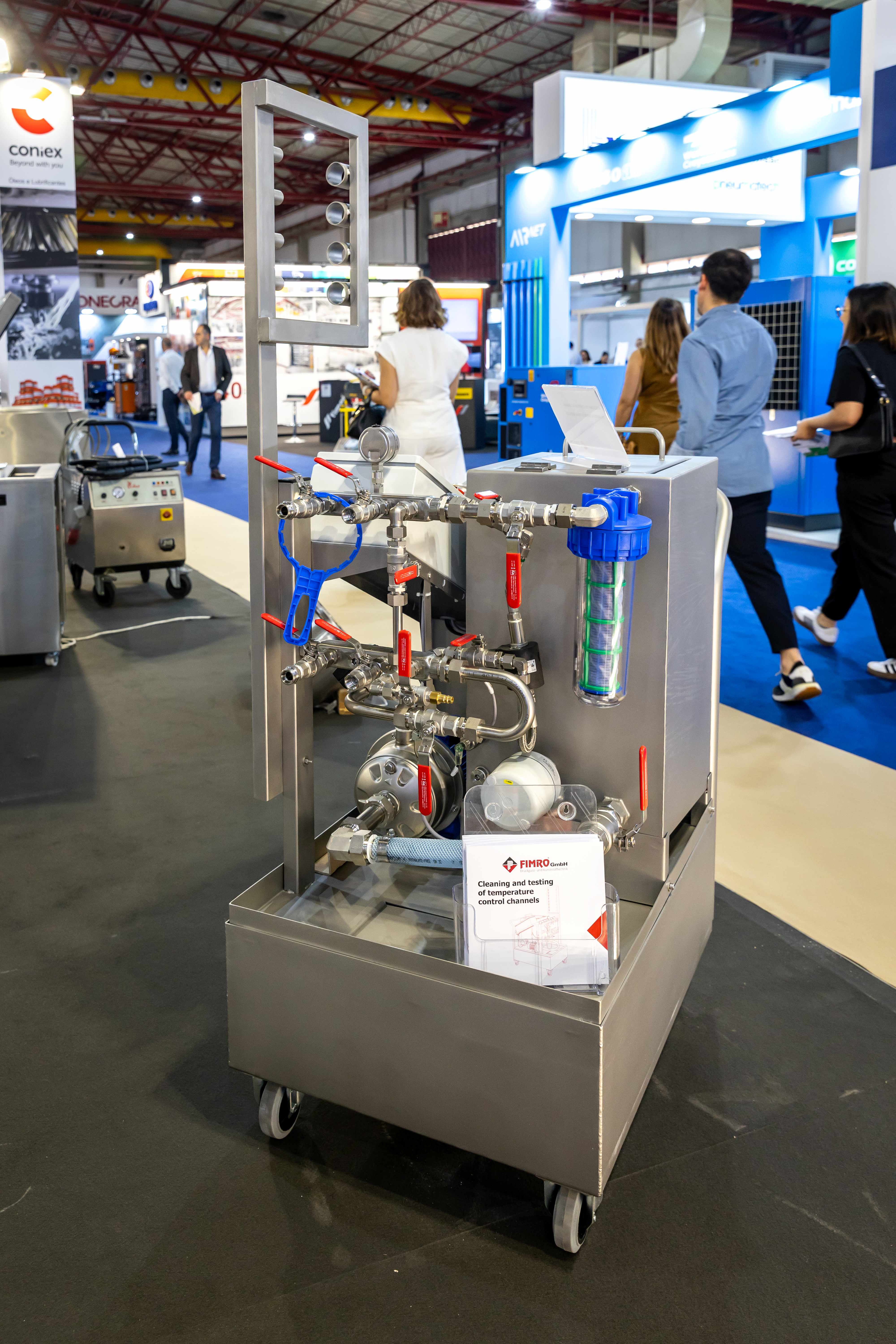 Coniex zeigt auf der EMAF die SPM Reinigung, das Spülen und Prüfen von Temperierkanälen der FIMRO
