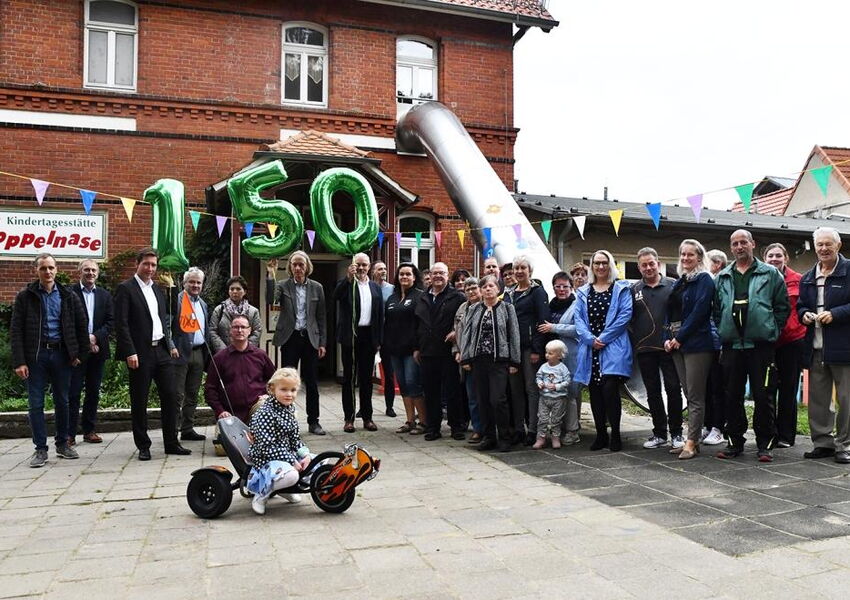 Anlässlich des 150jährigen Geburtstags der KITA Hoppelnase haben wir uns mit einem Gokart Dreirad für den Einsatz und das große Engagement bedankt.