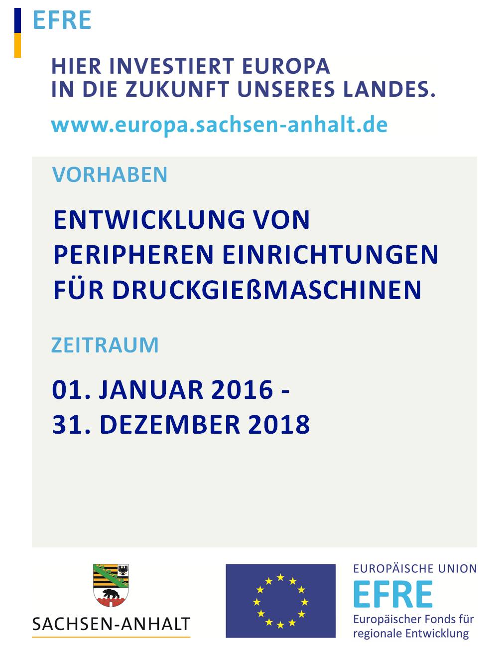 Zum 01.01.2016 wurde mit dem Projekt „Entwicklung von peripheren Einrichtungen für Druckgießmaschinen“ gestartet. Ziel dieses Projektes ist die weitere Verbesserung unserer eigenen Produkte, zum einen der Anlagen zur Innenreinigung von Sprühwerkzeugen und zum anderen der Reinigungsanlagen für Temperierkanäle. Desweiteren wird es im Rahmen dieses Projektes auch eine Entwicklung eines vollständig neuen Produktes geben.